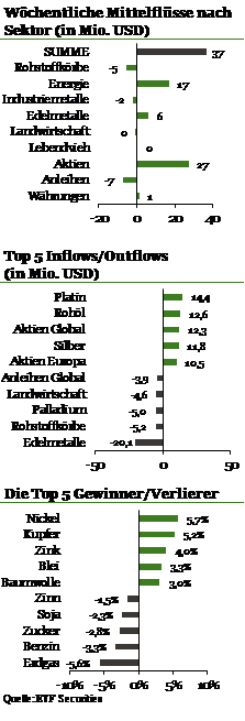 Bei Rohöl-ETPs kam es aufgrund der Zuflüsse in Short-ETPs zum ersten Mal seit September wieder zu Netto-Zuflüssen,