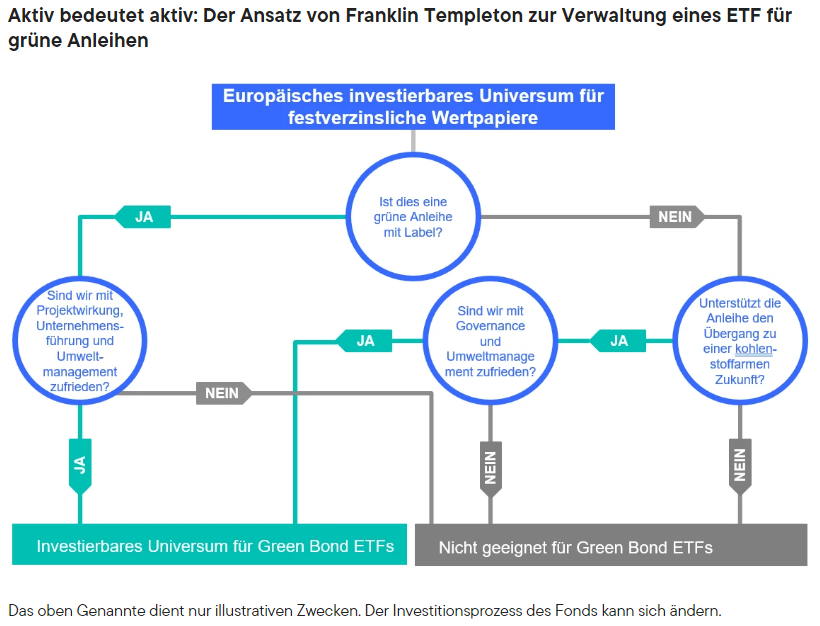 Bei Franklin Templeton definieren wir aktives Management nicht nur durch eigenständige Entscheidungsfindung, sondern durch eine umfassende Infrastruktur aus Forschung, Analyse und Beziehungsaufbau. Unser Team führt gründliche Recherchen durch, setzt sich intensiv mit den Unternehmen, in die investiert wird, auseinander und pflegt kontinuierliche Beziehungen zu deren Management. Dies ermöglicht es unseren Fondsmanagern, fundierte Entscheidungen zu treffen, die über das einfache Index-Tracking hinausgehen. Zusammenfassend entwickeln sich aktive ETFs von einer Nischenidee zu gängigen Anlagevehikeln und bieten eine flexible Alternative zum passiven Index-Tracking. Wir glauben, dass das anhaltende Wachstum der ETF-Struktur die traditionelle Diskussion um 'aktiv versus passiv' letztlich obsolet machen wird. Natürlich werden Anleger weiterhin Herausforderungen gegenüberstehen. Eine besteht darin, aktives Management zu definieren und echt aktive Strategien von 'Index-Plus', 'Index-Enhanced', 'Smart Beta' und anderen Ansätzen zu unterscheiden. Eine weitere ist die Notwendigkeit, bei aktiven ETFs eine ebenso strenge Due-Diligence-Prüfung durchzuführen wie bei aktiv verwalteten Investmentfonds. Die ETF-Expansion bringt jedoch viele Anlagemöglichkeiten mit sich und ermöglicht es Anlegern, ihre Portfolios über verschiedene Anlageklassen, Risikoniveaus und unterschiedliche Grade an Tracking-Error maßzuschneidern. Endnotes WICHTIGE RECHTLICHE INFORMATIONEN ETFs werden wie Aktien gehandelt, schwanken im Marktwert und können zu Preisen oberhalb oder unterhalb ihres Nettoinventarwerts (Net Asset Value, NAV) gehandelt werden. Maklergebühren und ETF-Kosten mindern die Renditen. ETF-Anteile können den ganzen Tag über zu ihrem Marktpreis, nicht ihrem NAV, an der Börse gekauft oder verkauft werden, an der sie notiert sind. Anteile von ETFs sind auf Sekundärmärkten handelbar und können dort entweder mit einem Aufschlag oder einem Abschlag zu ihrem NAV gehandelt werden. Privatanleger kaufen und verkaufen ETF-Anteile zu Marktpreisen (nicht NAV) auf dem Sekundärmarkt während des gesamten Handelstages. Diese Anteile sind nicht einzeln direkt vom ETF zum Kauf oder zur Rücknahme verfügbar. Das vorliegende Material dient ausschließlich der allgemeinen Information. Es ist weder als individuelle Anlageberatung noch als Empfehlung oder Aufforderung zum Kauf, Verkauf oder Halten eines Wertpapiers oder zur Übernahme einer Anlagestrategie zu verstehen. Es stellt keine Rechts- oder Steuerberatung dar. Das vorliegende Dokument darf nicht ohne die vorherige schriftliche Genehmigung von Franklin Templeton reproduziert, verteilt oder veröffentlicht werden. Die zum Ausdruck gebrachten Meinungen sind die der AnlageverwalterInnen. Die Kommentare, Ansichten und Analysen entsprechen dem Datum der Veröffentlichung und können sich ohne Ankündigung ändern. Diese Einschätzungen und die ihnen zugrunde liegenden Annahmen können sich aufgrund von Markt- oder anderen Bedingungen ändern. Zudem können sie von den Ansichten anderer PortfoliomanagerInnen oder des Unternehmens insgesamt abweichen. Die im vorliegenden Dokument enthaltenen Informationen sind nicht als vollständige Analyse sämtlicher wesentlicher Fakten zu einem Land, einer Region oder einem Markt gedacht. Es gibt keine Garantie dafür, dass Vorhersagen, Projektionen oder Prognosen zur Wirtschaft, zum Aktienmarkt, zum Anleihemarkt oder zu den wirtschaftlichen Trends der Märkte eintreten werden. Der Wert von Anlagen und von damit erzielten Erträgen kann sowohl fallen als auch steigen, und Sie erhalten unter Umständen nicht den ursprünglich investierten Betrag zurück. Die Wertentwicklung der Vergangenheit ist kein Indikator für die zukünftigen Renditen. Alle Anlagen sind mit Risiken verbunden, ein Verlust des Anlagekapitals ist möglich. Alle in diesem Dokument enthaltenen Recherchen und Analysen wurden von Franklin Templeton für seine eigenen Zwecke beschafft und können in diesem Zusammenhang genutzt werden. Sie werden Ihnen nur als Nebenleistung bereitgestellt. Bei der Erstellung dieser Unterlage wurden möglicherweise Daten von Drittanbietern verwendet. Franklin Templeton („FT“) hat diese Daten nicht unabhängig begutachtet, validiert und geprüft. Auch wenn die Informationen aus Quellen bezogen wurden, die Franklin Templeton für zuverlässig hält, kann keine Garantie bezüglich ihrer Richtigkeit gegeben werden, und diese Informationen können unvollständig oder zusammengefasst sein und können sich jederzeit ohne Vorankündigung ändern. Die Erwähnung einzelner Wertpapiere stellt weder eine Empfehlung zum Kauf, Halten oder Verkauf von Wertpapieren dar noch ist sie als solche auszulegen, und die zu diesen einzelnen Wertpapieren gegebenenfalls genannten Informationen stellen keine ausreichende Grundlage für eine Anlageentscheidung dar. FT haftet für keinerlei Verluste, die durch die Nutzung dieser Informationen entstehen. Es liegt im alleinigen Ermessen des Nutzers, auf die Kommentare, Meinungen und Analysen im vorliegenden Dokument zu vertrauen. Produkte, Dienstleistungen und Informationen sind möglicherweise nicht in allen Ländern verfügbar und werden außerhalb der USA von verbundenen Unternehmen von FT und/oder ihren Vertriebsstellen, wie nach lokalem Recht und lokalen Vorschriften zulässig, angeboten. Bitte wenden Sie sich für weitere Informationen über die Verfügbarkeit von Produkten und Dienstleistungen in Ihrem Land an Ihre/n eigene/n FinanzberaterIn oder Ihre Ansprechperson für institutionelle AnlegerInnen bei Franklin Templeton. Herausgegeben in Europa von: Franklin Templeton International Services S.à r.l. – unter der Aufsicht der Commission de Surveillance du Secteur Financier – 8A, rue Albert Borschette, L-1246 Luxemburg. Tel.: +352-46 66 67-1, Fax: +352-46 66 76.