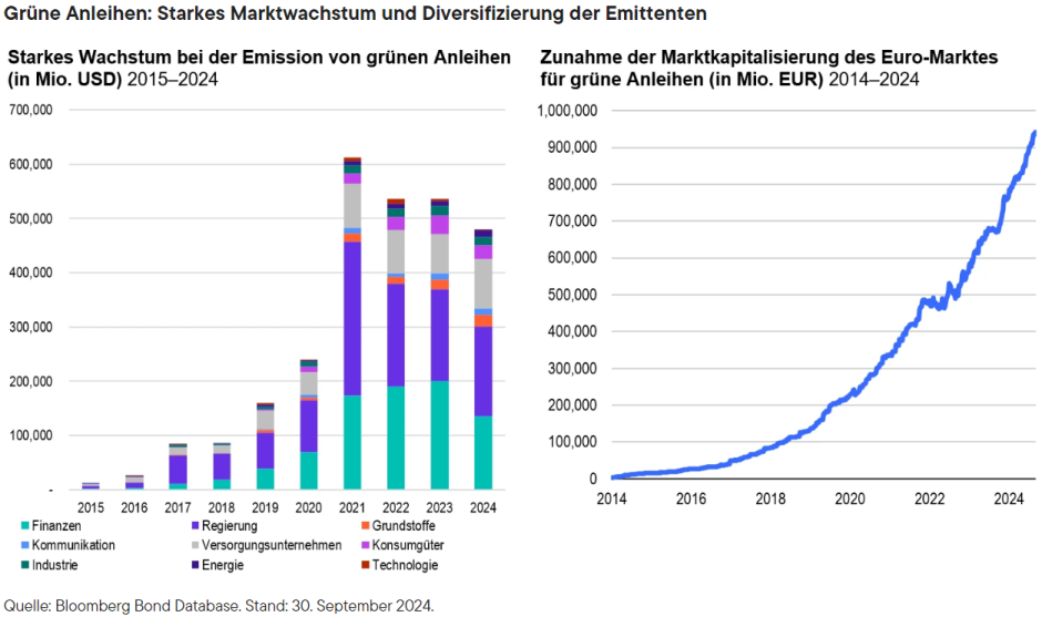 Wie ihre passiven Gegenstücke haben aktive ETFs unterschiedliche Anwendungen in privaten und institutionellen Portfolios. Eine primäre Verwendung liegt in der Portfoliodiversifizierung, da aktive ETFs Zugang zu Sektoren, Themen oder Anlagestilen bieten können, die in traditionellen Index-ETFs unterrepräsentiert sein könnten. Ein aktiver ETF, der sich auf grüne Anleihen konzentriert, ermöglicht es Investoren beispielsweise, Zugang zu diesem relativ neuen Marktsegment zu erhalten und gleichzeitig potenziellen Mehrwert zu schaffen. Grüne Anleihen sind auf der Wertpapierebene und nicht auf der Unternehmensebene gekennzeichnet, sodass Unternehmen grüne Anleihen für spezifische Projekte ausgeben können, auch wenn ihre Gesamtoperationen nicht mit den Zielen des Klimawandels übereinstimmen. Ein aktiver Manager kann diese Feinheiten untersuchen und möglicherweise eine als grün gekennzeichnete Anleihe ausschließen, wenn er die Umweltpolitik, die Sicherheitsvorkehrungen oder die allgemeinen Praktiken des Emittenten für unzureichend hält. Ein passiv verwalteter ETF müsste die Anleihe natürlich halten, wenn sie Teil des Index ist, den er nachbildet.5 Das starke Wachstum des europäischen Marktes für grüne Anleihen von praktisch null auf fast eine Billion Euro in 10 Jahren, gekoppelt mit einer zunehmenden Diversifizierung der Emittenten, unterstützt den Fall für aktives Management in diesem Segment.