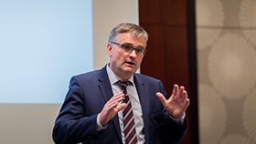 2016 sei ein Jahr der Fehleinschätzungen gewesen, das sich nicht wiederholen dürfe. Niemand habe mit einem negativen EU-Referendum in Großbritannien gerechnet. Und in den USA bereitete sich die liberale Elite mental bereits auf die erste US-Präsidentin der Geschichte vor. „Was wir im vergangenen Jahr erlebt haben, ist die Entdeckung einer bisher unsichtbaren Wählermasse. Es sei ein Wählerpotential geweckt worden, das lange unter dem Radar der Meinungsforscher gärte“, so Kornelius. Die ökonomische Chancenlosigkeit vieler US-Bürger habe die USA Trump an die Macht gebracht.