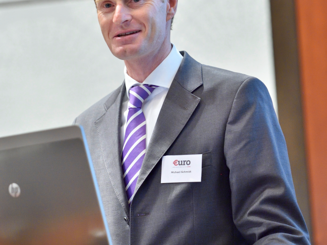 Dann ging das €uro Fund Forum offiziell mit der Begrüßung durch Michael Schmidt, Geschäftsführer von €uro Advisor Services, los. Für den Eröffnungsvortrag war Professor Clemens Fuest eingeladen, aktueller Präsident des Zentrums für Europäische Wirtschaftsforschung und ab kommendem April neuer Präsident des ifo-Instituts. Fuest sprach in erster Linie über die Wirtschaft in der Eurozone, für die er insgesamt optimistisch ist. Aufgrund der Griechenland-Krise beleuchtete er auch die Frage nach der Fiskalpolitik in Europa genauer und kam zum Schluss, dass eine nationale Entscheidung über die Staatsverschuldung und eine europäische Haftung der falsche Weg ist – jedoch leider der aktuelle. Besser sei, so Fuest, selbstverständlich sowohl eine europäische Entscheidung als auch eine gemeinsame Haftung. Doch dies, so der Mannheimer Professor, bleibe zunächst wohl Theorie. Dringend erforderlich sei deshalb vor allem „ein glaubwürdiges Verfahren für die Restrukturierung von Staatsschulden bei einer Überschuldung einzelner Mitgliedstaaten“, fordert er daher. Bereits beschlossene Maßnahmen wie der ESM oder die Bankenunion hält Fuest für sinnvolle Programme. Die Vorschläge der Präsidenten der fünf EU-Institutionen, ein unabhängiges „Fiscal Board“ auf Euro-Ebene für die stärkere fiskalpolitische Koordinierung zu installieren und gleichzeitig sogenannte „Wettbewerbsfähigkeitsbehörden“ einzuführen, kritisiert der Ökonom hingegen: „Keiner dieser Vorschläge beinhaltet ein Verfahren für die Restrukturierung von Staatsschulden." Ein ausführliches Interview mit Clemens Fuest ist vor kurzem bei FundResearch erschienen (Teil 1 und Teil 2).
