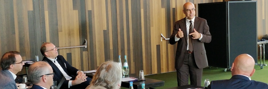 In seinem Eröffnungsreferat wies IfW-Präsident Professor Gabriel Felbermayr auf die starke Position der USA im Handelskrieg mit China und die gestiegenen Risiken für einen No-Deal-Brexit hin. „ Wir sehen schon sehr deutliche Bremsspuren in der deutschen Konjunktur – vor allem in den Industriebranchen“, erklärt der Wirtschaftswissenschaftler. Seine Aussichten auf die künftige Entwicklung werden vor der Erwartung geprägt, dass die Globalisierungsphase nun vorbei ist. Das bedeute auch vermehrte Unsicherheit bei den internationalen Handelsbeziehungen, in die Deutschland ja stark eingebunden ist.
