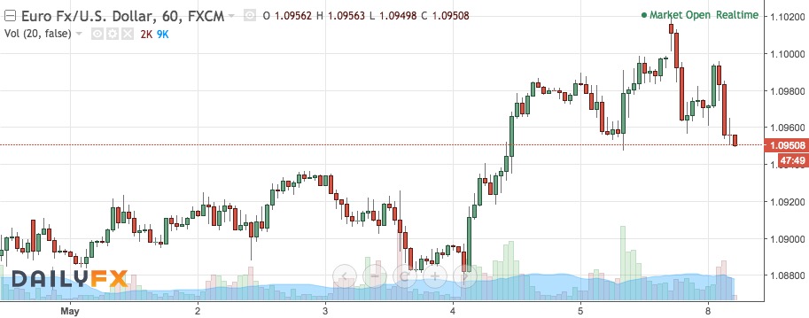 Der Euro hatte im Vorfeld der Wahlen zugelegt, am Montag ging der Kurs gegenüber dem Dollar leicht zurück.