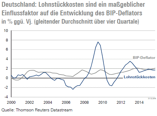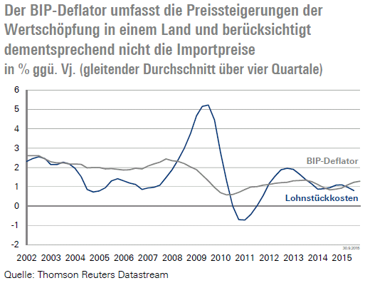 BIP-Deflators von etwas über 2,0 %. In der Eurozone verzeichnete die BIP-Deflator einen Anstieg von über 1,0 % im vierten Quartal und steht damit in etwa im Einklang mit der Entwicklung der Lohnstückkosten.