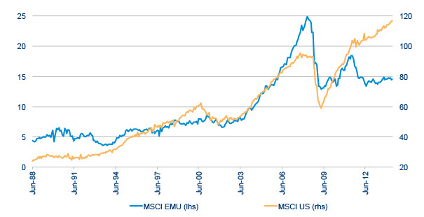 Sceptics may argue that even the latest measures announced by the ECB will not be enough to see sustained growth return in Europe. Certainly there are factors outside the ECB’s control – such as the situation in Ukraine – that may weigh on economic activity. Nevertheless, earnings in Europe have plenty of scope to play catch up with other developed markets, for example the US where earnings have surpassed their pre-crisis peak. It is important to bear in mind that economic growth is by no means the only source of earnings growth for corporates. There are a number of factors that should prove supportive for eurozone earnings growth, and correspondingly for share prices to advance.