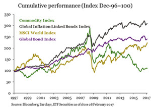 Bei ETF Securities streicht man hervor, dass inflationsgeschützte Anleihen in Phasen wirtschaftlicher Erholung sowie anziehender Inflation attraktiv sind und alle anderen Anlageklassen in den vergangenen zehn Jahren outperformt haben. Als Folge sollte der „Appetit“ der Investoren auf solche Bonds steigen.