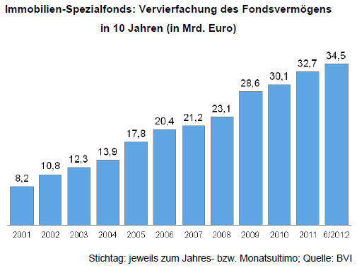 Im rein institutionellen Geschäft verwalten die BVI-Mitglieder 900 Mrd. Euro in Spezialfonds und 296 Mrd. Euro in Vermögen außerhalb von Investmentfonds. Weitere 678 Mrd. Euro stecken in Publikumsfonds. Das Gesamtvolumen stieg im ersten Halbjahr um gut fünf Prozent auf 1.874 Mrd. Euro per 30. Juni 2012.