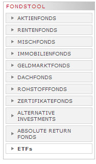 Auch das Fonds-Tool wurde ausgebaut. Exchange Traded Funds (ETFs) sind jetzt als eigene Assetklasse mit einem klick aufrufbar. Die FundResearch-Redaktion ist stets daran interessiert, die Seite für ihre Leser zu verbessern. Schreiben Sie uns, wie Ihnen die Neuerungen gefallen und was Ihnen noch fehlt: redaktion@fundresearch.de.