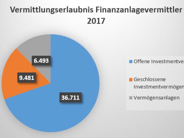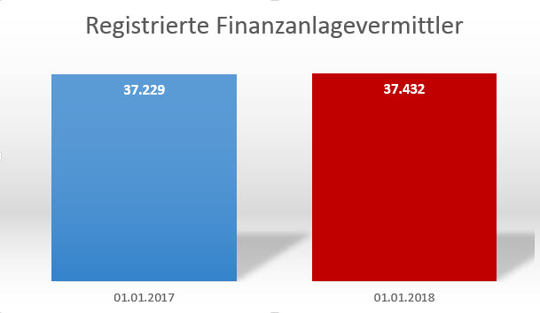 Nahezu konstant (+0,55%) blieb dagegen die Anzahl der Finanzanlagenvermittler. Zum Stichtag 01. Januar 2018 verzeichnete die DIHK 37.432 Finanzanlagenvermittler, 203 mehr als ein Jahr zuvor.