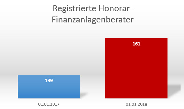 Die Zahl der bei der Deutschen Industrie und Handelskammer (DIHK) registrierten Honorar-Finanzanlagenberater ist im letzten Jahr um mehr als 16 Prozent gestiegen. Am Jahresanfang 2017 vermeldete die DIHK 139 registrierte Honorarberater. Ein Jahr später zählt die Institution 161.