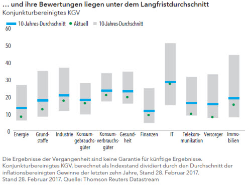 Die derzeitigen Strukturprobleme in Europa haben die Bewertungen europäischer Aktien gedrückt (vgl. die ersten beiden Abbildungen). Daraus können sich Chancen für einzelwertorientierte Investoren ergeben – denn erfolgreiche Unternehmen, die weltweit Umsätze und Gewinne erzielen, sind vielleicht ebenfalls günstig bewertet.