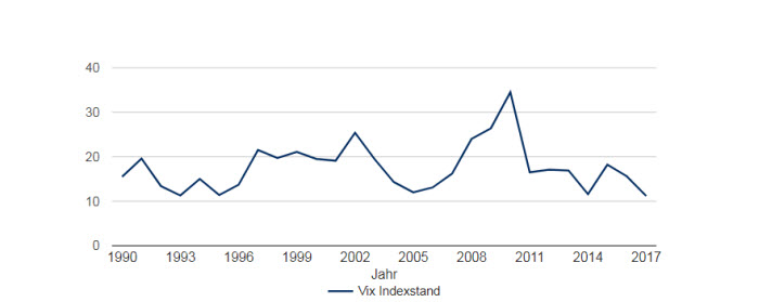 Quelle: Schroders, Thomson Reuters Datastream; Stand aller Daten: 30. Juni 2017. Die aufgezeigten Daten beziehen sich auf den Chicago Board Options Exchange (CBOE) Volatility Index (VIX) zum letzten Werktag des zweiten Quartals eines jeden aufgeführten Jahres. Nur zu Informationszwecken. Es gilt zu beachten, dass die Wertentwicklung der Vergangenheit kein Hinweis für die Wertentwicklung in der Zukunft ist und sich möglicherweise nicht wiederholen lässt.
