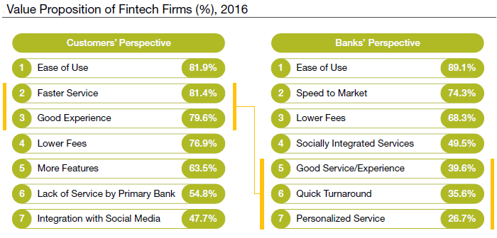 Doch Banken schätzen nicht nur das Vertrauen ihrer Kunden falsch ein, sondern auch deren Wünsche und Erwartungen an technische Finanzdienstleistungen. Zwar gehen Banken zu Recht davon aus, dass eine einfache Bedienung oberste Priorität haben sollte. Doch während Kunden an modernen Fintechs vor allem einen schnellen Service schätzen und gute Erfahrungen mit Vertrauen honorieren, glauben Banken, dass Fintechs vor allem mit hoher Dynamik ihre Entwicklungen am Markt positionieren können und mit niedrigen Preisen punkten. Wie wichtig gute Erfahrungen für Kunden sind, scheinen klassische Banken zu unterschätzen.