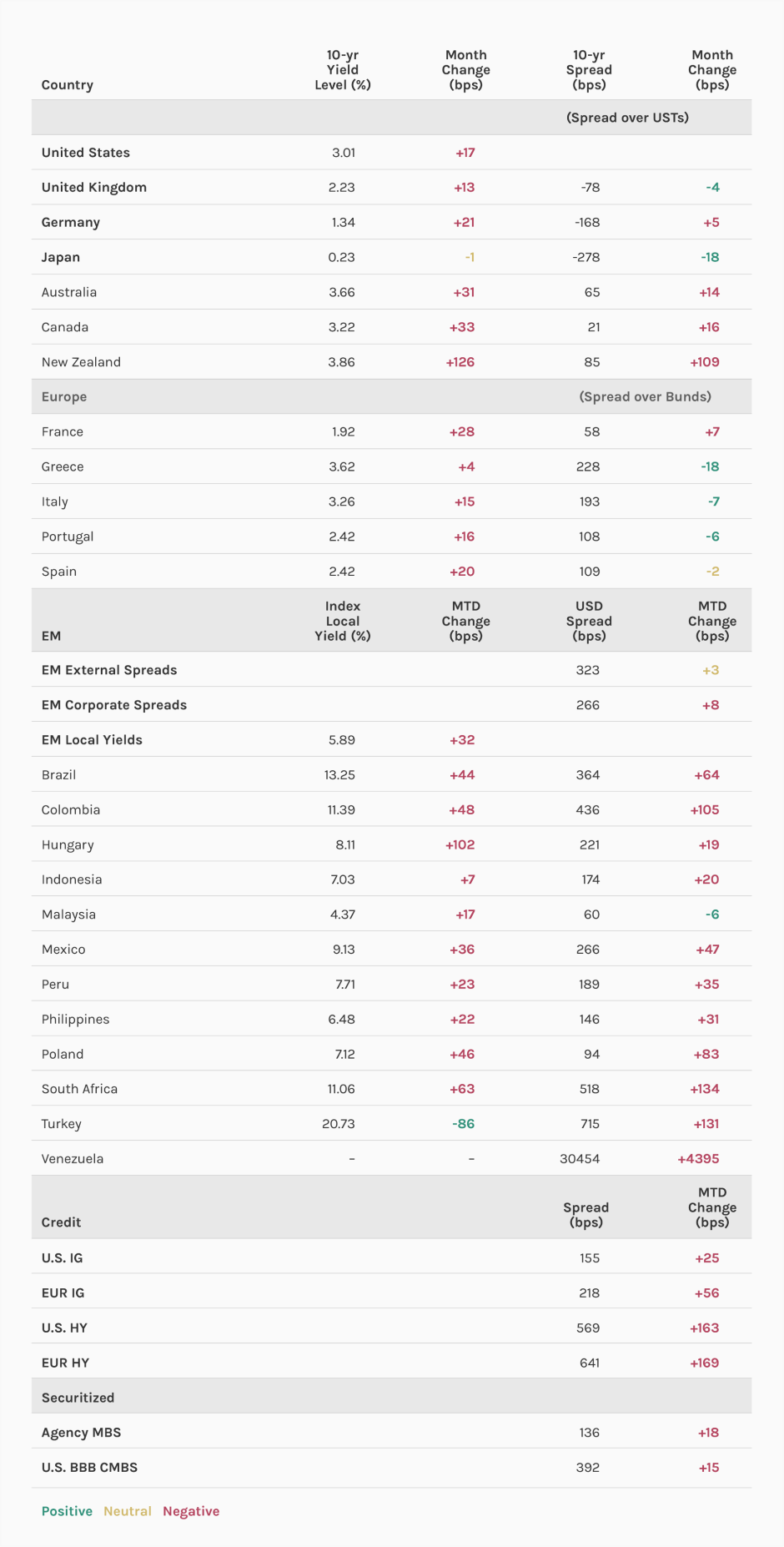 DISPLAY 3: Major Monthly Changes in 10-Year Yields and Spreads