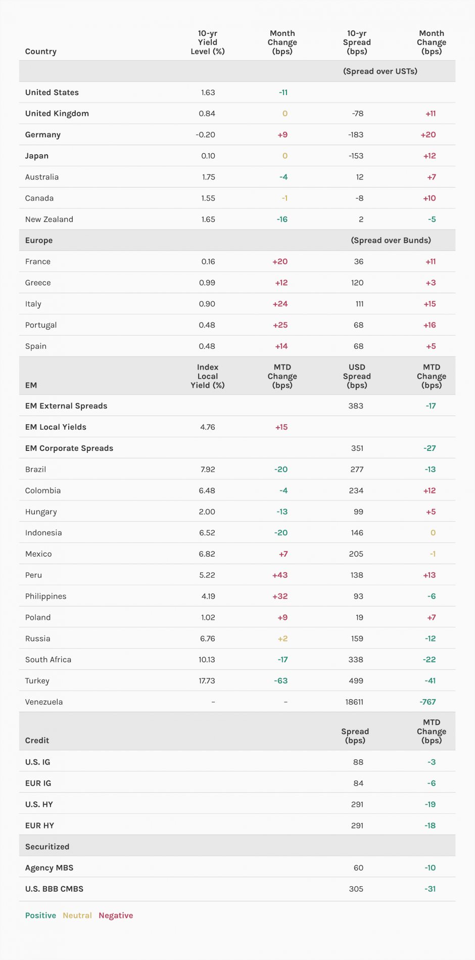 Display 3: Major Monthly Changes in 10-Year Yields and Spreads