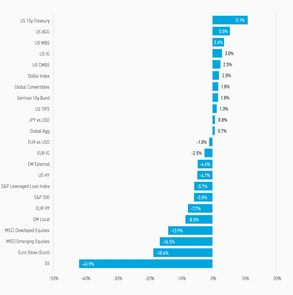 Note: USD-based performance. Source: Bloomberg. Data as of May 29, 2020. The indexes are provided for illustrative purposes only and are not meant to depict the performance of a specific investment. Past performance is no guarantee of future results. See below for index definitions.