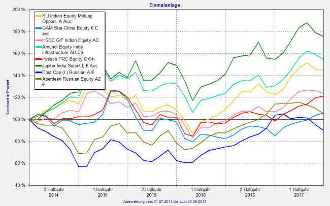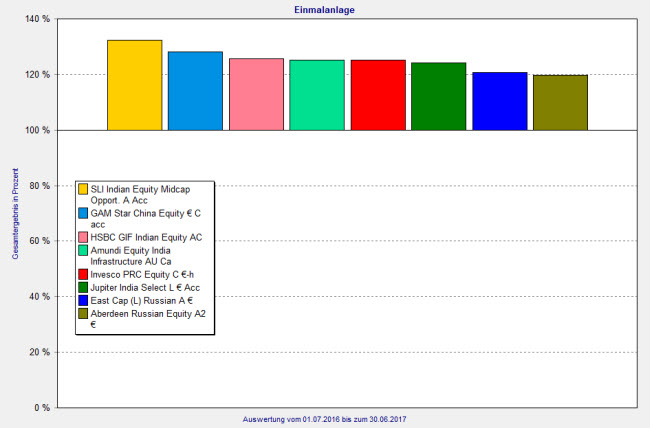 Hinter Indien folgt ein Fonds aus dem Land der Lotusblüten. Der von Michael Lai verwaltete GAM Star China Equity C EUR Acc (ISIN: IE00B1W3X261) erzielt gute 28% im Vergleichszeitraum. Lai hat neben einem M.S. in Econometrics auch eine Ausbildung zum CFA absolviert. Nach seinen Angaben hat der Fonds zuletzt von den guten Unternehmenszahlen aus dem chinesischen Finanz- und IT-Sektor profitiert. Lai konzentriert das Investment des gut 200 Mio. Euro schweren Fonds vor allem auf Titel der Technologie-Branche. Die größte Position war Ende Mai 2017 Tencent Holdings mit knapp unter 10%.