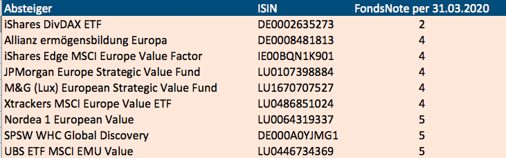 Die Fondsauf- und Absteiger März finden Sie hier.