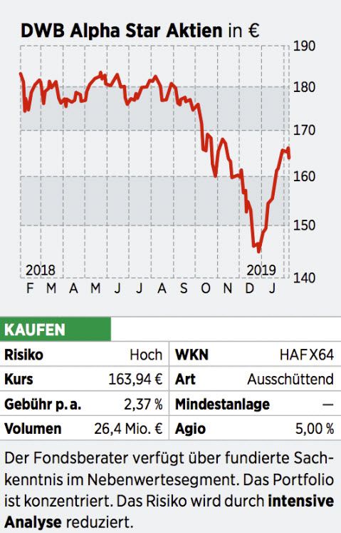 DWB- Alpha Star Aktienfonds: Der Fonds investiert in kleine und mittelgroße Werte. Die kluge Auswahl, der enge Kontakt zu den Unternehmen und die kontinuierliche Risikokontrolle sorgen für hohe Renditen.
