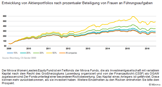 Die Ungleichbehandlung der Geschlechter im Arbeitsleben gilt als eines der zentralen Entwicklungshemmnisse von leistungsfähigen Gesellschaften weltweit. Die Gleichstellung von Mann und Frau in der Wirtschaft zählt daher zu einem der 17 Ziele für nachhaltige Entwicklung der Vereinten Nationen. Der von Soliane Varlet gemanagte Mirova Themenfonds unterstützt dieses Ziel durch die Konstruktion eines aus rund 250 Titeln bestehenden genderfreundlichen Aktienportfolios.
