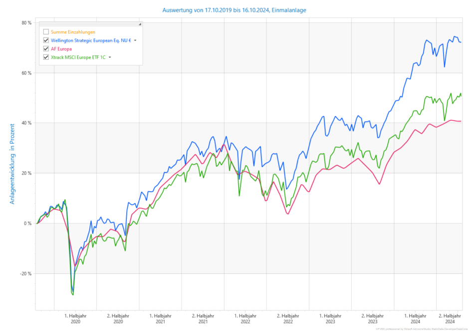 | Wellington MF (Ireland) plc - Strategic European Equity - S Unhedged EUR | IE00B6TYHG95 | 76,15% | 33,28% | 24,35% | 17,26% | 264,71% | 10,35% | 15,43% |