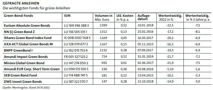 Die Zinserhöhungsoffensive der Zentralbanken traf Fonds mit grünen Anleihen besonders hart: Die meist lange Duration und die häufig niedrigen Kupons machten sich bemerkbar.