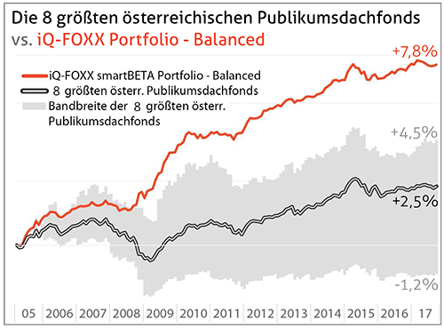 Können die iQ-FOXX Portfolios mit den Schwergewichten der österreichischen Publikums-Dachfonds mithalten?