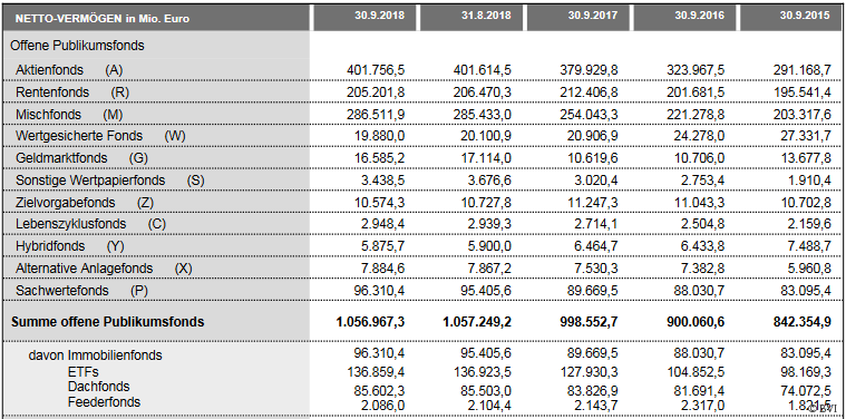 Am schwersten wogen die abschmelzenden Vermögenswerte in Aktienfonds, deren Wert sich infolge der Korrektur um mehr als 223 Milliarden Euro reduzierte. Die schlechte Performance von Wertpapieren an den Kapitalmärkten schlägt sich damit empfindlich in den Erträgen der Fondsanbieter nieder. Für Gesellschaften, die im Durchschnitt für ihre Fonds 1,5 Prozent des angelegten Vermögens als TER ausweisen, ist die Negativ-Entwicklung an den Börsen ein herber Schlag in die Bilanzen. Hinter vorgehaltener Hand wird in dem einen oder anderen Haus deshalb auch über Gebührenanhebungen nachgedacht.