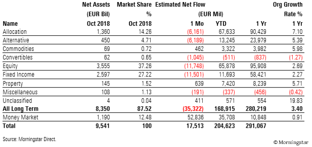 Angesichts der starken Konkurrenz aus dem Passiv-Lager müssten die Manager aktiver Fonds nun eigentlich über Gebührensenkungen nachdenken. Doch es geht nicht nur ums Verkaufen. Es geht auch ums Geld verdienen mit dem, was schon im Bestand ist – und damit um richtig viel Geld. Laut Morningstar-Statistik gingen aufgrund der Kombination von Abflüssen und sinkenden Asset-Preisen in Europa die in langfristigen Fonds investierten Mittel von 8,64 Billionen Euro im September auf 8,35 Billionen Euro zum 31. Oktober zurück.