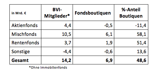 Fast die Hälfte des Mittelaufkommens im Publikumsfondsbereichs geht auf das Konto der unabhängigen Asset Manager