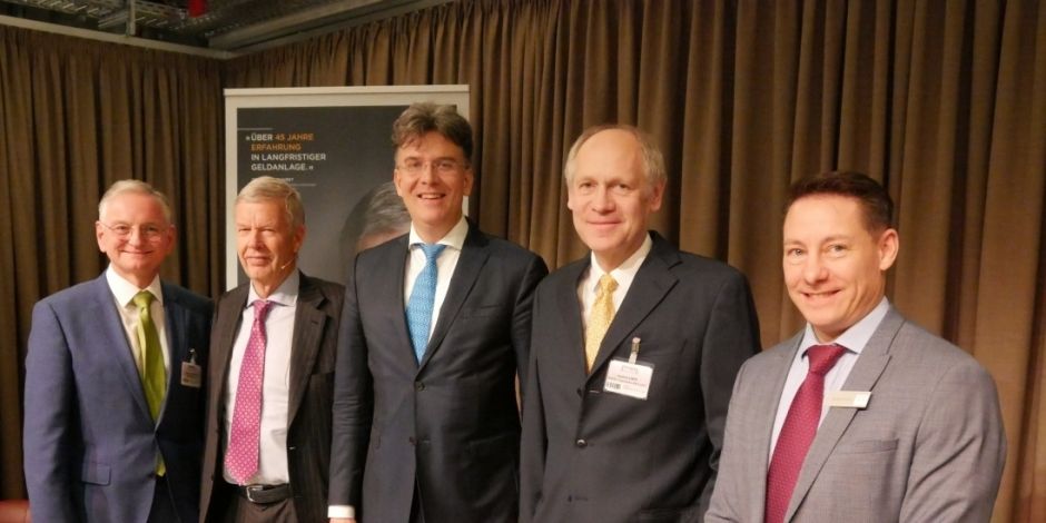 Moderator Stefan-David Grün, DJE Kapital AG; Jens Ehrhardt, DJE Kapital AG; Frank Fischer, Shareholder Value Management AG; Hendrik Leber, ACATIS; Moderator Philipp Prömm, Shareholder Value Management AG (v.l.)