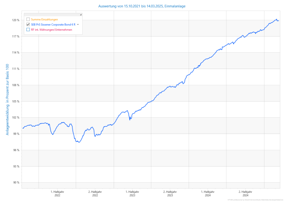 Sehr stabil laufender Unternehmensanleihefonds. Das Chance-/Risikoverhältnis ist sehr gut. Ein Fonds, der jedes Depot bereichert.