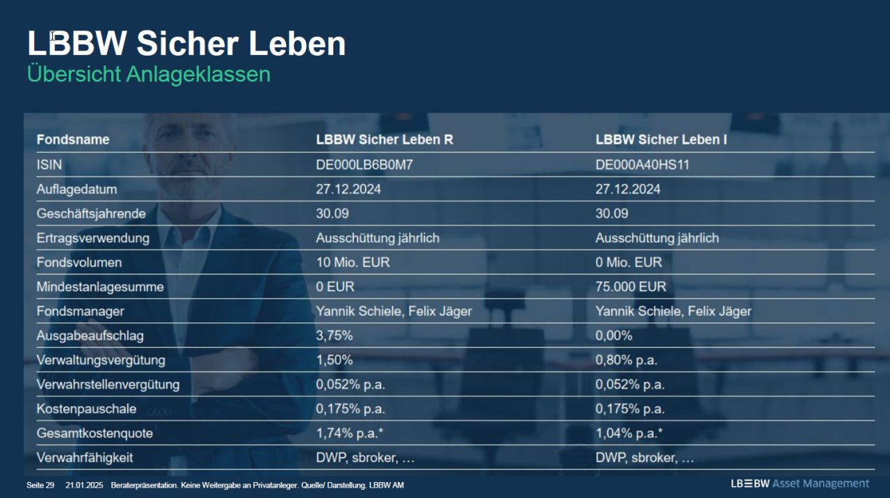 Fonds-Fakten zum LBBW Sicher Leben: