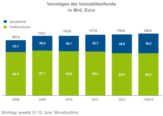 Starkes Interesse zeigen deutsche Anleger auch an Immobilienfonds. Seit Jahresbeginn flossen 3,7 Milliarden Euro in die Assetklasse. Immobilien-Spezialfonds sammelten weitere 2,1 Milliarden Euro ein.