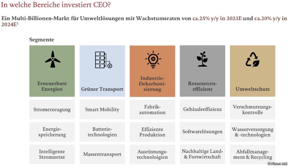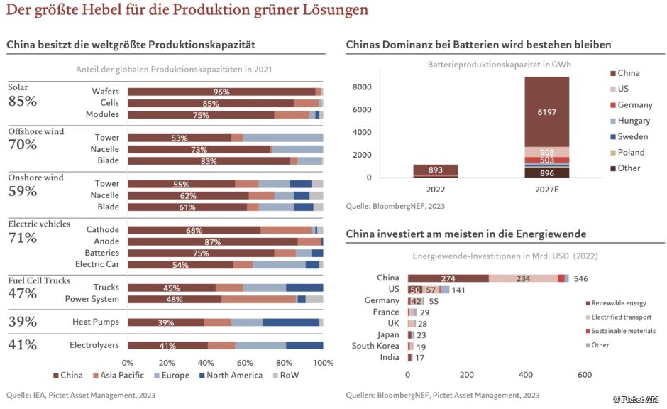 Um die aussichtsreichen Sektoren und Unternehmen zu identifizieren, nutzten die Analysten von Pictet unter anderem ein seit Jahren bewährtes System zur Bewertung planetarer Belastungsgrenzen, erklärt Walter Liebe. Was zudem auffiele: In den globalen Aktienindizes, die auf den Multi-Billionenmarkt Umwelttechnologien ausgerichtet sind, seien chinesische Unternehmen massiv unterrepräsentiert – obwohl sie in etlichen Sektoren den Weltmarkt dominierten. Hier sehe Pictet eine Chance. Denn dieses Ungleichgewicht sei auf Dauer nicht wirklich zu rechtfertigen, so Liebe.