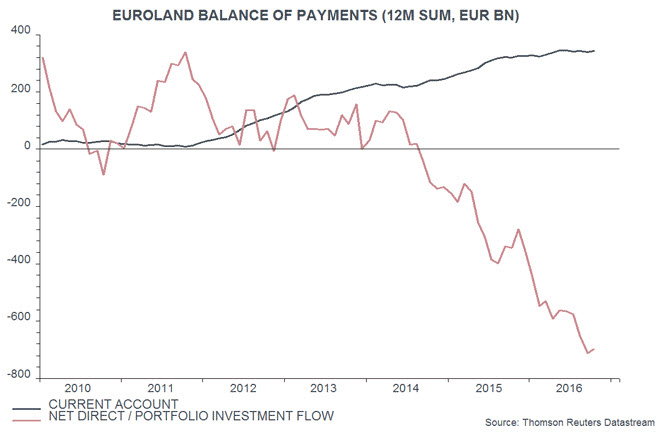Eurozone equities underperformed in 2016 and remain out of favour, partly reflecting the perceived risk of “populists” increasing their influence or gaining control in 2017 elections in the Netherlands, France, Germany and – possibly – Italy. The net outflow of direct and portfolio investment capital from the region, however, reached a record 6.7% of GDP in the 12 months to September 2016, while real narrow money growth remains respectable and faster than in the US, Japan and the UK, suggesting solid economic prospects – third and fourth charts. Barring a worst-case political scenario, the capital exodus may slow or reverse in 2017, lifting the euro and asset prices.