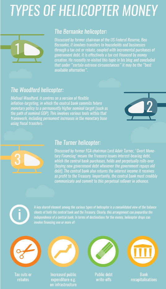 Milton Friedmans Gedankenexperiment vom Helikoptergeld hat viele Ökonomen und Politiker rund um den Globus inspiriert. Was würde die Maßnahme konkret bedeuten? Eine Antwort in Bildern.
