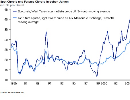 In einer Rede im September 2004 sprach der damalige Fed-Governor Gramlich davon, dass man die Einschätzung der Finanzmärkte über das fundamental gerechtfertigte Niveau an den Future-Preisen ablesen kann. So dürften sich die Finanzmärkte bei der Einschätzung des Ölpreises in beispielsweise sieben Jahren an den Grenzkosten der Produktion von Rohöl orientieren. Tatsächlich schwankte der Spot-Ölpreis von 1985 bis 2004 um den Futures-Ölpreis in sieben Jahren.