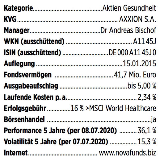 Der 2015 aufgelegte nova steady HealthCare investiert zwar in den Gesundheitsbereich, jeodch nicht in Pharma- und Biotechaktien.