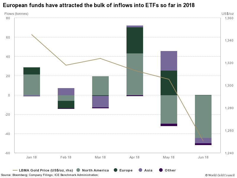 Doch das Edelmetall hat an den Kapitalmärkten den schlechtesten Start seit neun Jahren hingelegt. In den ersten sechs Monaten wurden nur 1959 Tonnen Gold nachgefragt. Das sind 127 Tonnen weniger als im Vorjahr und so wenig wie seit 2009 nicht mehr. Das zeigen die Zahlen des aktuellen World Gold Council Reports.
