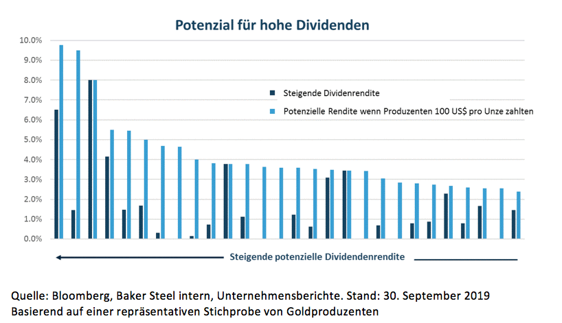 Als aktiver Anlageverwalter verwaltet unser Team ein konzentriertes Portfolio mit einem wertorientierten Ansatz und der Flexibilität, von aktuellen Anlagethemen zu profitieren. In den letzten Monaten gehörten zu diesen Themen ein Fokus auf die Gold-Majors bei konstruktiven Fusionen und Übernahmen sowie eine erhöhte Allokation bei Silberproduzenten, da diese Unternehmen relativ unterbewertet sind. Ein zentrales Thema für Baker Steel als aktiven Investmentmanager sind die von den Produzenten gezahlten Dividenden und die Fähigkeit der Unternehmen, diese Dividenden bei steigender Rentabilität des Sektors zu erhöhen. Nach den Unternehmensbesprechungen auf der Konferenz in Denver ist unser Team vorsichtig optimistisch, dass Managementteams die Dividenden ernst nehmen.