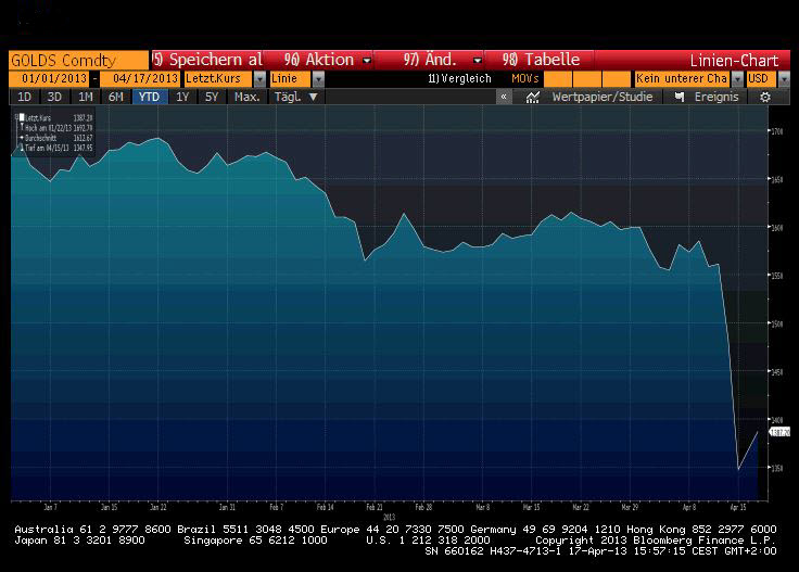 Deka-Experte erwartet kurzfristigen Rebound. Durch Abflauen der Eurokrise ab Ende 2014 sollte Goldpreis deutlich fallen.