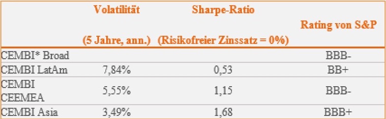 Eigenschaften von Schwellenländer-Unternehmensanleihen nach Regionen