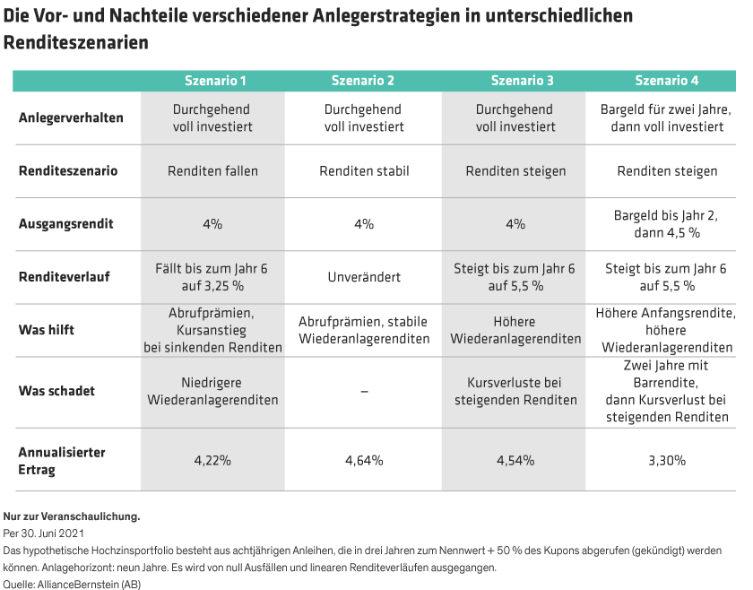 Heißt das, dass Anleger mit hohen Renditen eigentlich auf steigende Renditen setzen sollten? Nicht unbedingt.
