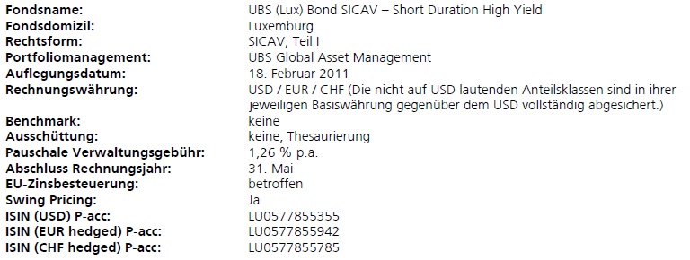 Der Fonds im Überblick: UBS (Lux) Bond SICAV – Short Duration High Yield