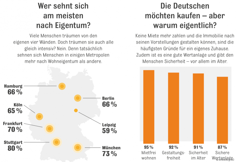 „Individuelle Faktoren wie der Wunsch nach Sicherheit, Zufriedenheit und Glück treffen dabei auf externe Faktoren wie steigende Mieten und steigende Kaufpreise. Zusätzlich wirkt die Niedrigzinspolitik der Europäischen Zentralbank wie ein Katalysator. Bei Kreditzinsen von unter einem Prozent erscheint vielen Menschen Kaufen attraktiver als Mieten“, erklärt Mirjam Mohr.