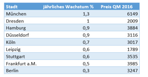 In den Metropolen Hamburg, Berlin und München ist das Verhältnis zur Miete besonders hoch. Etwa dreißig Kaltmieten müssen im Schnitt für den Erwerb einer Immobilie aufgewendet werden. Für Gebäude mit gemischter Nutzung, sogenannte Zins- oder Renditehäuser, liegt der Vervielfältiger weit höher. Nach Angaben der Maklers “Aigner Immobilien München” wechselten 2016 Wohnhäuser mit Gewerbeanteil für das 26-fache bis 47-fache der erzielbaren Nettokaltmiete den Besitzer.