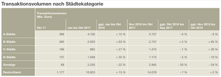 Laut einer aktuellen Erhebung des Immobilien-Dienstleistungsunternehmens Savills sind die Anleger bei Wohnimmobilien zudem immer mehr bereit, auch Kompromisse im Hinblick auf die Qualität der Standorte einzugehen, als das bei Gewerbeimmobilien der Fall ist. Bei sogenannten B-, C- und D-Lagen sind die Preise zuletzt viel dynamischer gestiegen als in den Metropolen. Städte wie Duisburg, Essen und Halle sind plötzlich unter den gefragten Top 10 zu finden.