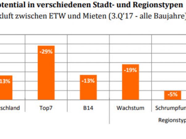 Trotz der Warnstufe für die Metropolen lokalisiert Braun die Gefahr für den Immobilienmarkt nicht nur dort. „In den B-Städten drohen neben Preiseinbrüchen auch zunehmend Leerstände“, so Braun. Anders als in den Schwarmstädten böten diese Städte kaum Absorbtionspotential, sollten Preise fallen. Es gebe kaum Haushalte, die aus dem Umland durch einen Preisverfall zurück in die Stadt gezogen würden, um einem Preissturz entgegen zu wirken, so der Ökonom.