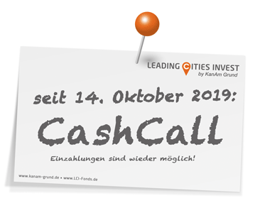 Seit heute können Sie Ihre Order (Kauf) auf gewohntem Wege bei Ihrer depotführenden Stelle / Bank platzieren, damit der Erwerb der Anteile am LEADING CITIES INVEST erfolgen kann. Die Einreichung von AVISEN ist während des CashCalls nicht notwendig. |